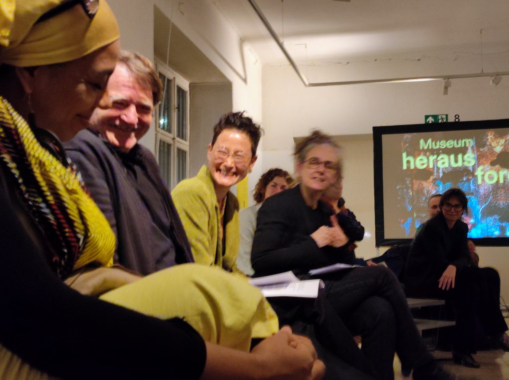 In einem fiktiven, zukünftigen Rückblick diskutieren MUSMIGs Ljubomir Bratić, Renate Höllwart (schnittpunkt) und Suy Lan Hopmann (Kuratorin, Hamburg und Berlin) Kämpfe und Visionen musealer Initiativen.