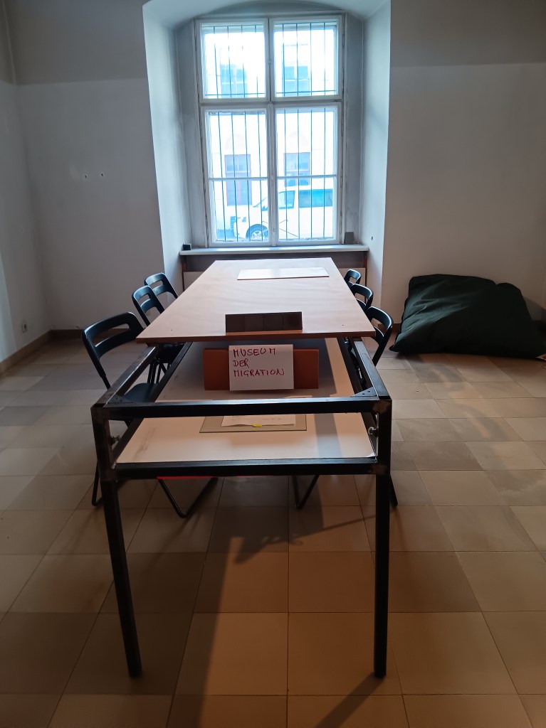 Seit Februar 2024 ist MUSMIG als „Museum im Museum“ in den Open Spaces & Galleries im Volkskundemuseum zu Gast. Hier eröffnen wir unser erstes Direktionszimmer und entwickeln u.a. die erste Ausstellung des MUSMIG „Gib BESCHEID!“.