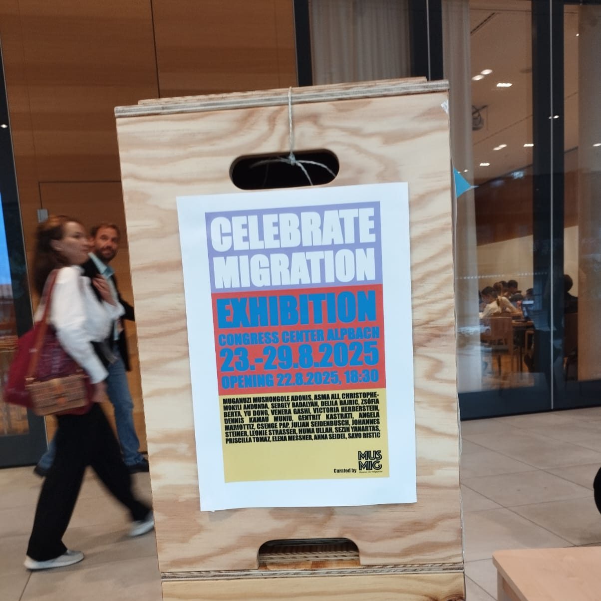 Gemeinsam mit Teilnehmenden aus Österreich und vielen anderen Regionen der Welt erörterten wir Fragen rund um die Möglichkeiten und Notwendigkeiten der Musealisierung von Migration. Die Seminarteilnehmenden konzipierten Objekte, die migrantische Erfahrungen entweder dokumentierten oder diese auf einer Metaebene präsentieren und schufen so die Ausstellung „Celebrate Migration“, die im Congress Center Alpbach vom 23.-29. August 2025 zu sehen ist. Die Ausstellung wurde von den MUSMIG-Kollektivmitgliedern Elena Messner, Savo Ristić und Anna Seidel kuratiert.